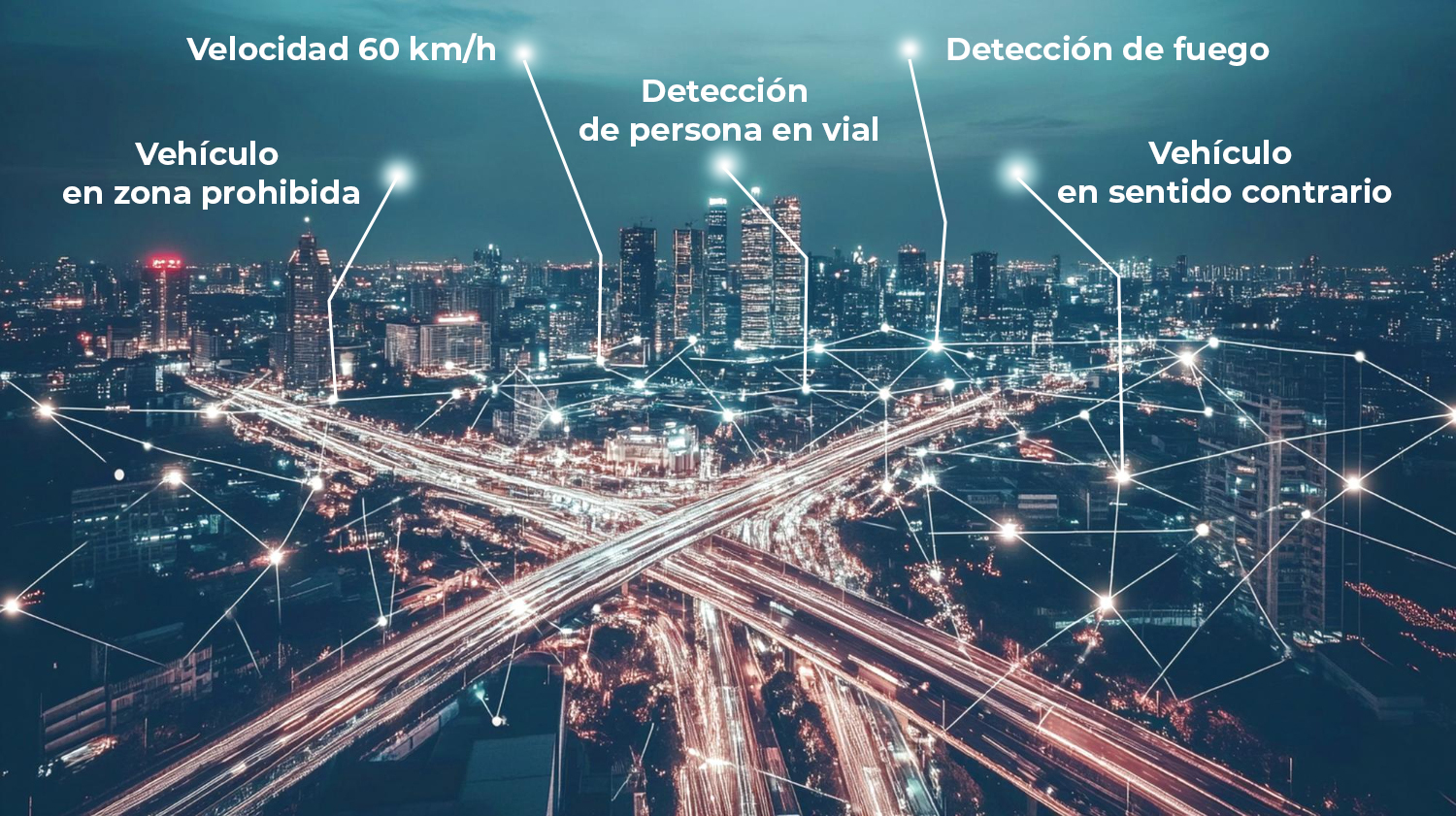 Seguridad de peatones y conductores Poseemos analíticas basadas en IA capaces de distinguir entre vehículos, personas y bicicletas, y aplicarles a estos objetos distintas analíticas favoreciendo la supervisión de las ciudades. |