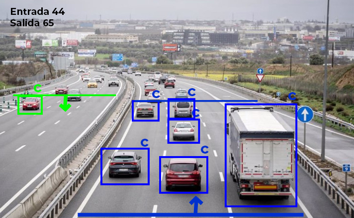 Proporciona un recuento continuo y actualizado de los vehículos, con la posibilidad de configurar líneas de entrada y salida para un control más eficiente. |
